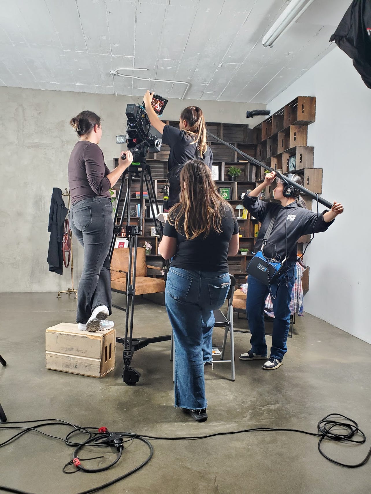 I decided, early on, to bring as many females onto this project as possible. I wanted female energy in the room, both because I wanted them to be blessed and strengthened in their own journeys, but also because if I was going to vulnerably go all out in a deeply female topic, I wanted to feel safe among sisters. Our 1st Assistant Camera Operator was also female (Rachel Franklin), and then I went on the hunt for a female sound person. I couldn’t find one. Sound operation on set tends to be a male occupation, so I accepted it and hired someone named North Chen. When I met North on set and realized she was a woman, I knew the female forces were with me. Most especially true with the fabulous Kaylie O’Connor taking BTS.